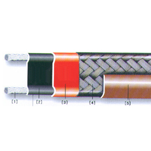 高溫溫控伴熱電纜(自限式電熱帶)廣泛應用于石油、化工、鋼鐵、電力等工業企業的管線、儲罐的伴熱保溫、抗凝、防凍。該電纜適用于普通區、危險區和腐蝕區等。電纜結構:1、銅芯導線:7×0.50、19×0.32