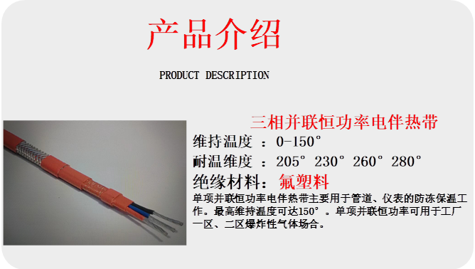 產(chǎn)品名稱:三相并聯(lián)恒功率電熱帶